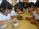 「きれいな色!」「おいしい~!」と、自分で点てたお抹茶を美味しくいただきました。次回は、友達にお茶を点てておもてなしをします。