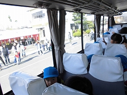 幼稚園からバスに乗って出発です。  大学はどんぐりがいっぱいでびっくり!