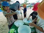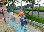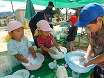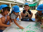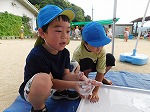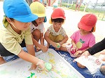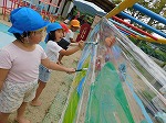 子どもたちはあそび服に着替え、1学期に楽しんだ遊びを思い出しながら水遊びや感触遊びを楽しんでいます。