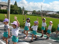 5歳児の子どもたちは、3歳児の手をつないで、郵便局までしっかりと歩けました