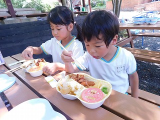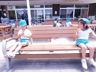 ☆野外保育(5歳)②☆山の探検の後は、ジュースを飲んでほっこりタイム。