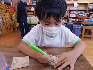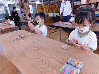 一人一人が思い思いの絵を描いています。素敵な自分だけのキーホルダーができました。