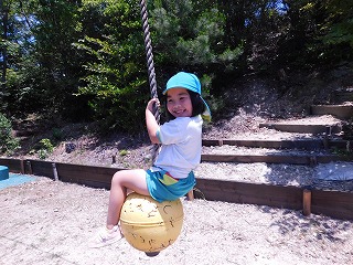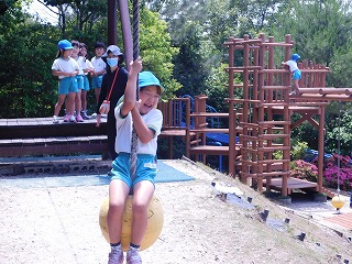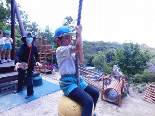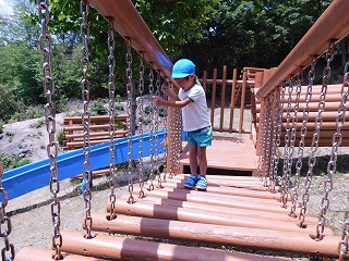 ゆらゆら橋に挑戦しているお友達。ゴールした時は達成感でいっぱいです。