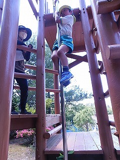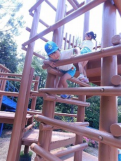 大きな遊具に登ったり、友達と長いローラー滑り台を楽しみました。