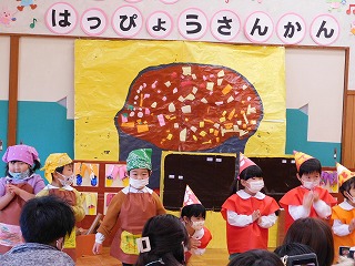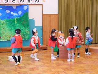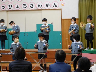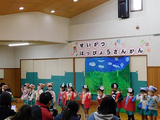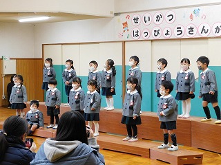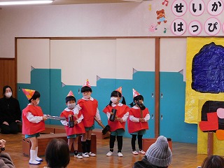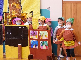 12月7~9日は生活発表参観でした。日頃から楽しんできた歌や合奏、そしていろいろな役になりきって遊ぶ劇遊びをお家の方に見ていただきました。