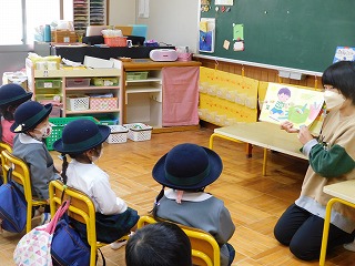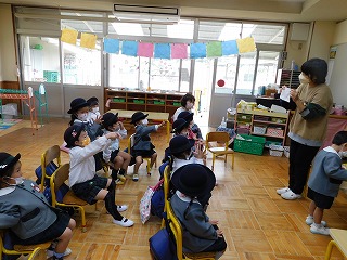絵本『おもちゃのかたづけできるかな』を読みながら、どうして片づけするのかな?どんな風に片づけるといいのかな?と、子どもたちと一緒に考えてみました。