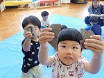 土粘土をうすーく伸ばしたりすることを楽しむ子どもたち。