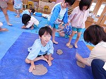 全身をつかって土粘土の感触を味わいながら楽しんでいました。