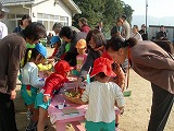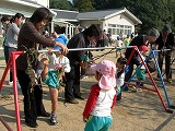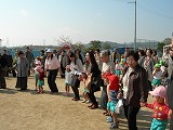 子ども達の遊んでいる様子を見て頂き、その後園庭で“どんぐり体操や”“キンダーポルカ”のフォークダンスを一緒にしました。