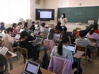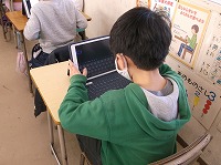 3年生が総合的な時間の中で、タブレット端末で文字入力の仕方を練習しました。子どもたちは先生の指示に従って、まず、枠をつくり、その中に自分の名前を打ち込みました。枠に打ち込まれた文字は、枠ごとにいろんな場所に張り付けられるので、子どもたちはとっても楽しそうでした。今後もタブレット端末を使いこなせるよう指導をしていきます。