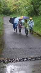 滋賀県希望ヶ丘文化公園に着いてからもずっと雨が降っていました。12時を過ぎてから、小雨になりましたので、教師でウォークラリーのコースの確認を行いました。一部だけ、安全を確保できない箇所がありましたので、ルートを変更し、ウォークラリーを行っています。子ども達は朝から雨だったので、ウォークラリーもキャンプファイアーもできないと思っていたようです。そのため、喜んで出発していきました。