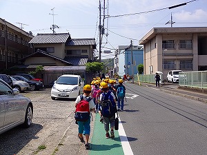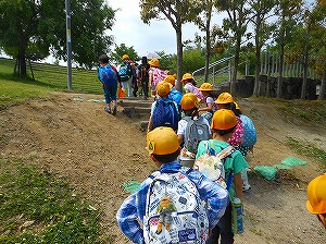 ドキドキ・わくわくで学校を出発してJR松井山手駅まで歩きました。