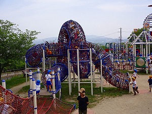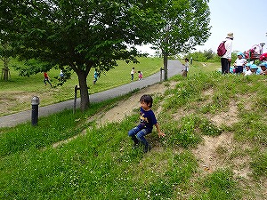 公園についたら、広い芝生におもしろそうな遊具を見つけて、