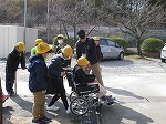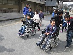 車いすの扱いを教わった後、実際に自分たちが乗る役と押す役に分かれました。段差に苦戦したり、スロープの下りがこわかったりと新しい発見に驚きながら体験しました。