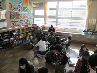 12月15日(木)の中間休みに「おひさま読み聞かせ」がありました。1学期と同じように、縦割り班の活動で、6年生が同じ班の子たちに本を読み聞かせました。6年生は2人で1冊の本を読み、本を選んでいるときから、「どうすれば楽しく聞いてくれるか」「楽しく聞ける本はないか」などを相談していました。下学年の子たちも真剣に聞いていて、感想では「おもしろかった」「楽しかった」などが挙がっていました。