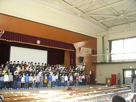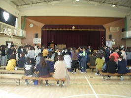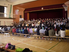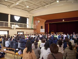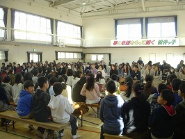 午後から、6年生と6年生の保護者が参加して、体育館で親子行事を実施しました。