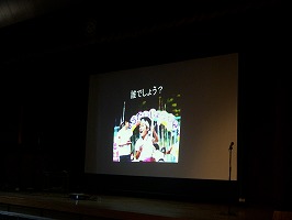 次に、スライドに幼い頃の写真を写し出してもらい、その横で一人ずつが「将来の夢」や「なりたい自分」についてスピーチしました。「(この写真、誰か)分かる~。」、「誰?これ?」など、幼い頃の写真を見ながら、現在の様子と比べて、楽しい時間を過ごすことができました。