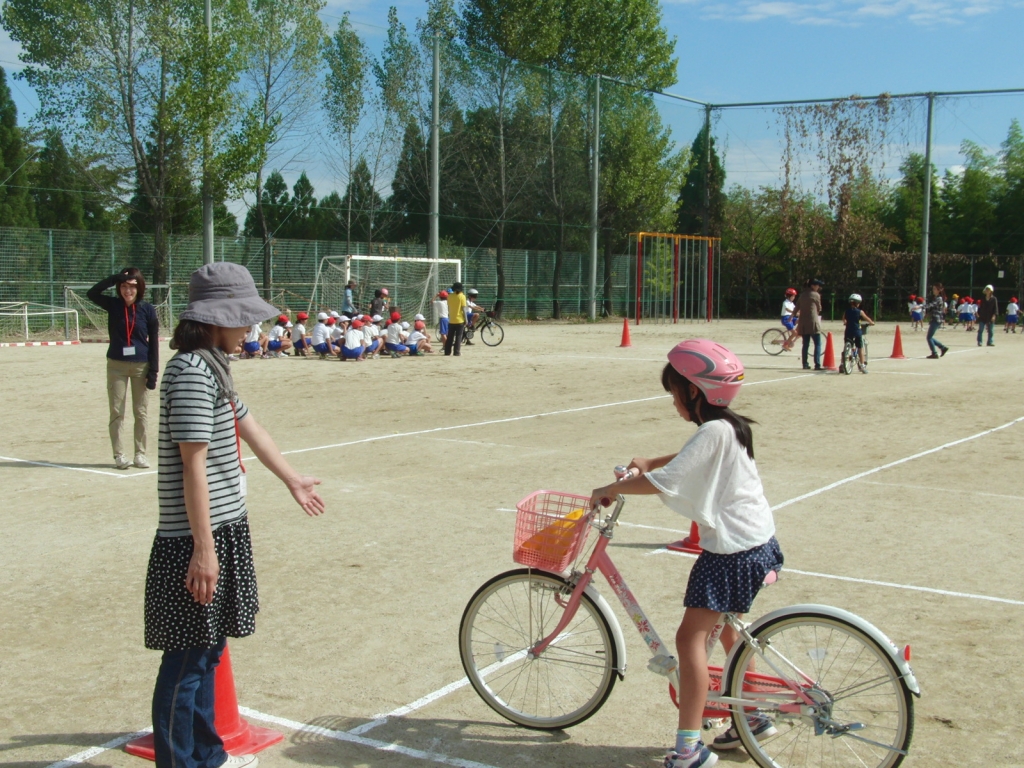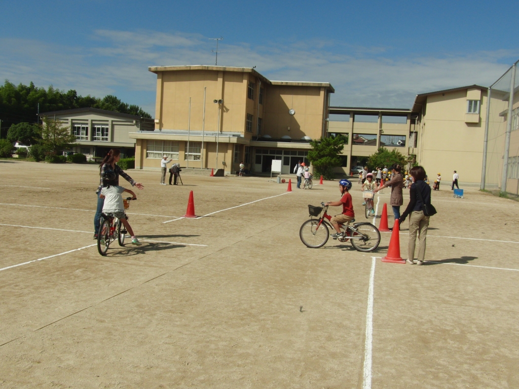 PTAの方や警察の方に来ていただき、自転車の正しい乗り方や交通ルールについて学習しました。