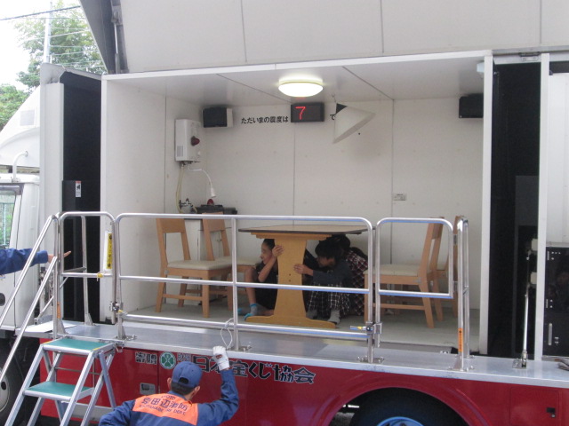 起震車体験では、震度7の地震を体験しました。強い揺れの中だと、立つどころか机の下にしゃがんでいることでさえ難しいことなどを実際に体験して学ぶことができました。