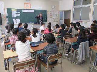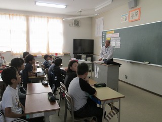本日5年生を対象に非行防止教室を行いました。京都府警OBのスクールサポーターの方を講師に招き、『やって良いこと、悪いことを理解し、いつも正しい行動ができる人になろう。』をめあてに、授業をしていただきました。