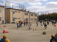 異年齢集団の交流を目的とした児童会行事のマツリンピックを行いました。この日は全校を赤白の2つのグループに分けて、1年生から6年生までの異年齢集団を組織し、玉入れや大縄跳びなどを行いました。少し春めいてきた空の下、子どもたちが元気に、学年を越えて交流することができました。