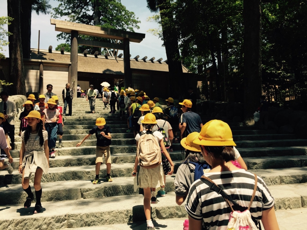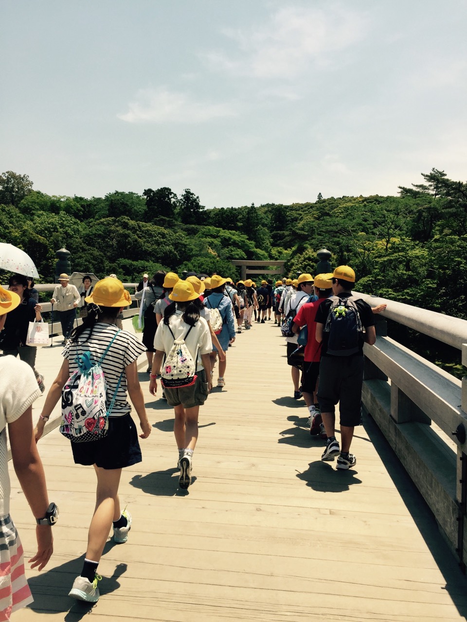 大鳥居の前でクラスごとに集合写真を撮って、伊勢神宮を見学しました。