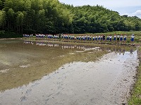 5年生の子どもたちが地域の方にお世話になり、田植え体験をしました。