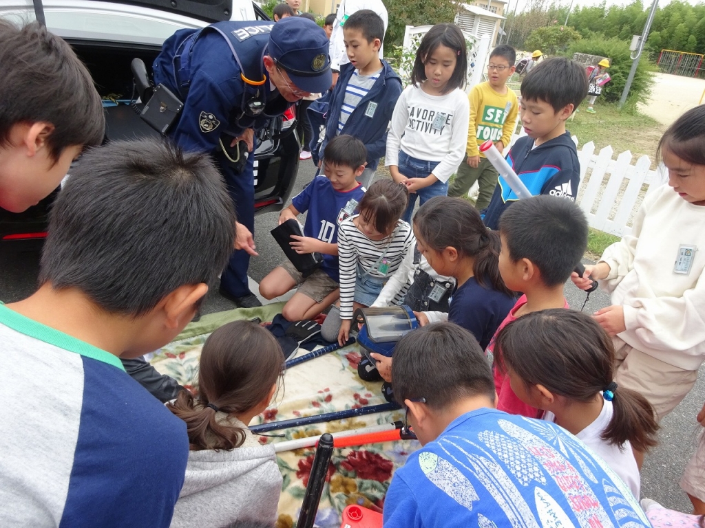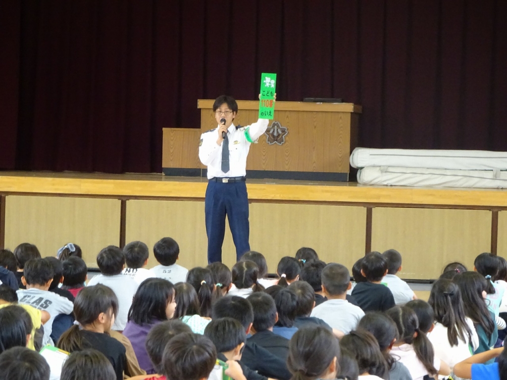 本日5・6校時、田辺警察署の方に来ていただいて、3・4年生が学習を行いました。内容は、交通安全や防犯のこと、警察の方の仕事についてでした。