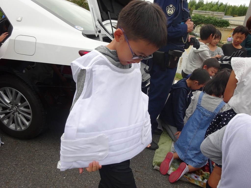 警察官の仕事については、実際にパトカーの中に乗せていただいたり、警察官使用する道具に触れさせていただいたりしました。