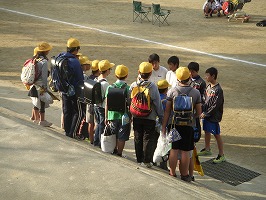 教育委員会や校長の判断により、教職員の引率のもと、児童を各地域まで早期に集団下校させます。その際は、さくら連絡網子ども連絡網)でお知らせの上、学校に提出いただいた緊急下校対応表をもとにして、下校させます。