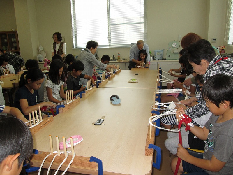 見学だけでなく、布でわらじを編む体験学習もさせていただきました。