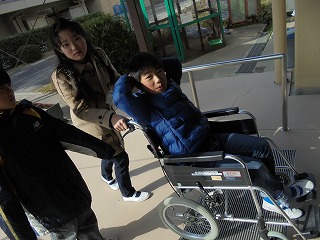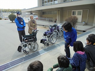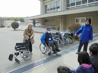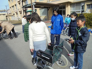 2月19日(月)の1・2・3時間目と、20日(火)の1・2時間目に、社会福祉協議会の方とボランティアグループ『ぴんぽ~ん』の方に来校していただき、車いす体験をしました。