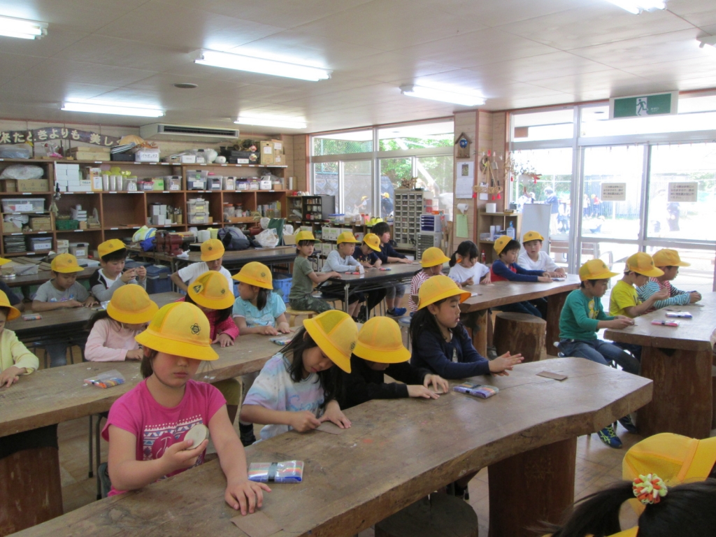 着いた後は、アスレチックで遊んだり、クラフト作りを楽しんだりしました。 クラフト作りは、施設の方が丁寧に説明してくださり、子ども達も夢中で取り組むことができました。思い出に残る素敵な作品を作っていました。