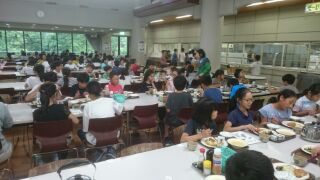 ただいま、食堂にて夕食を頂いています。