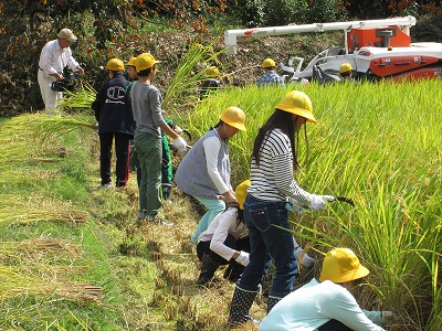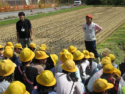 説明をよく聞き、一生懸命に稲刈り体験ができました。