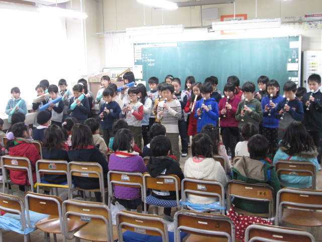 最後は3年生の合奏・合唱の発表。美しい演奏と歌声の発表に聴き入っていました。