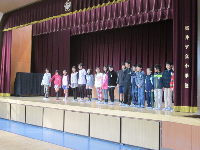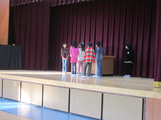 朝礼に行くときの並び方や待ち方を劇にして発表しました。