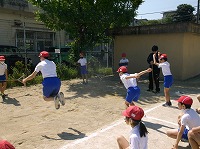 体力テストを行いました。2学年ずつ合同で行い、上の学年の児童が下の学年の児童にやり方を教えながら測定を行いました。上の学年の児童が、測定におけるポイントを上手に下の学年の児童に教えることで、子ども同士で、新たなつながりができたようでした。