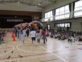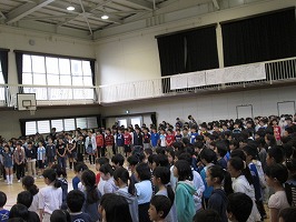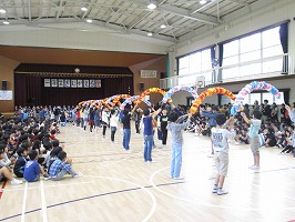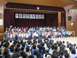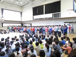 次に、全校合唱をしました。今年は、『猫の恩返し』の主題歌「風になる」を歌いました。