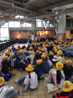 雨が降っていたのですが、みんなが楽しみにしていたウォークラリーを実施しました。実行委員会からのルール説明を聞いた後、担当の先生から、雨が降っているので、くれぐれも走ったりして足を滑らせたりしないように、安全に行動するようにとお話がありました。班で協力して、安全に行動することを、全員でしっかり確認しました。