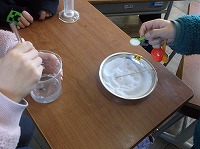 5年生は理科で「もののとけ方」の学習をしています。この日は食塩が水にどれくらい溶けるかについて調べました。子どもたちは実験を通して、常温の水でも、結構な量の食塩が溶けることに驚いていました。