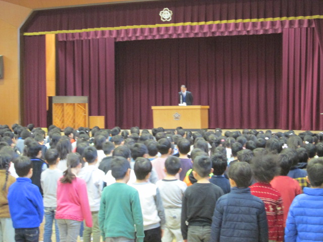 校長先生と新年のあいさつをした後、「目標を持って生活しよう」という校長先生のお話を聞きました。