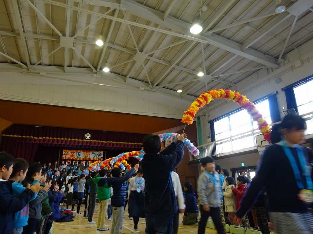 そして、5年生の花のアーチと、全校で作った花道で6年生は退場しました。