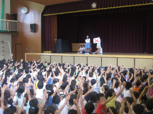 集会時に注意しなければいけないことを、寸劇・クイズにして発表しました。