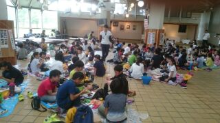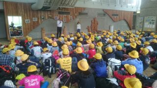 5年生の林間学習は、無事、滋賀県立希望が丘文化公園に到着し、入所式と昼食を終えました。