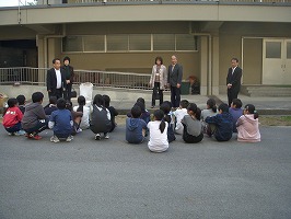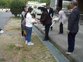 球根の贈呈式の後、プランターで水仙を育てる準備をしました。