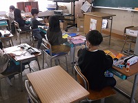 2年生の子どもたちが、図画工作の時間で、「パタパタストロー」という工作を作成しています。厚紙とストローを組み合わせ、胴体に通っているストローを動かすことで、手足となる棒が上下に動くおもちゃを楽しそうに作っていました。教室中に色とりどりの作品ができあがりました。