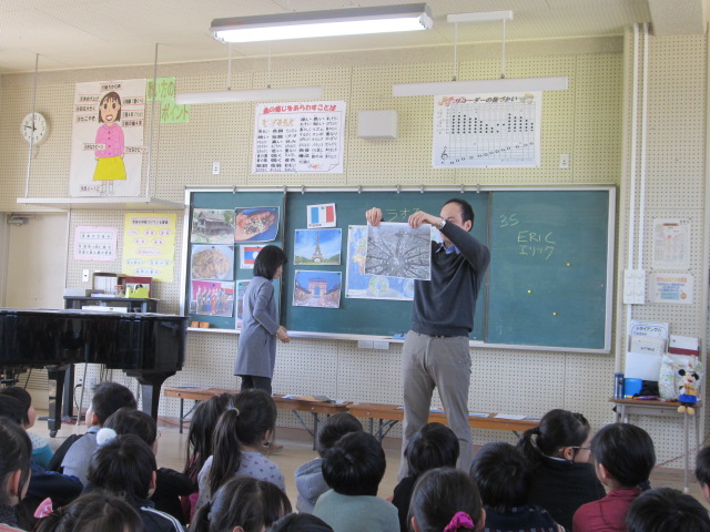 フランス人のエリックさんに来校していただき、1年、3年、4年の