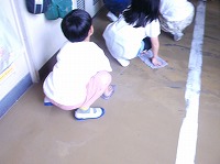 掃除の時間に3年生の子ども達が一生懸命、保健室前の廊下や手洗い場を掃除していました。保健室前はちょうど渡り廊下の突き当たりになるので、ほこりや砂がたまりやすいところです。子ども達は丁寧に箒ではいた後、雑巾で床を磨いていました。いつもきれいにしてくれてありがとう。