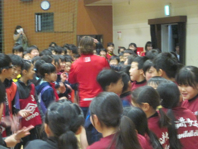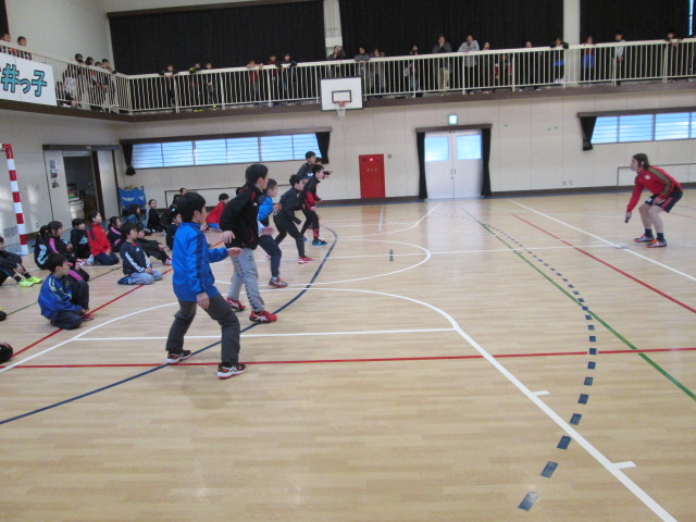 放課後は、ハンドボールクラブの子ども達にハンドボールの指導までしていただきました。